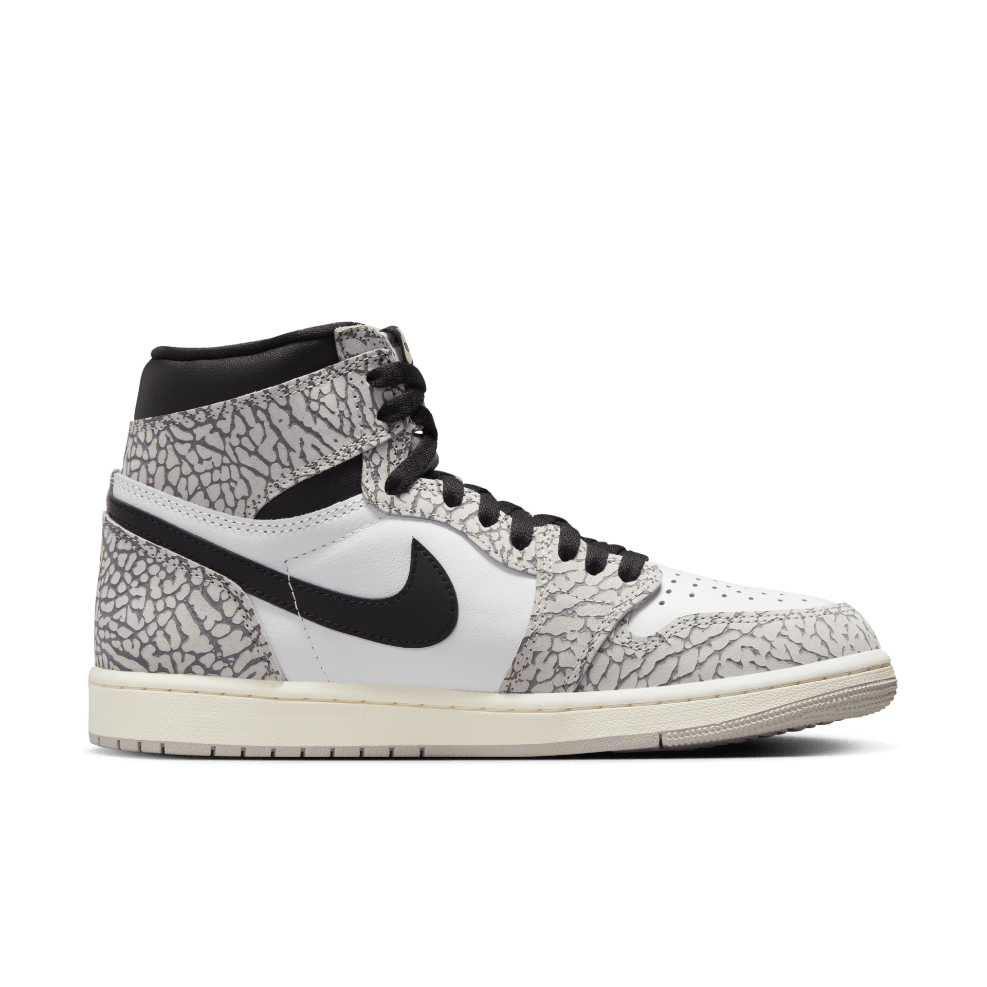 The Air Jordan 1 “White Cement” brings a bold twist to a legendary silhouette, blending classic design with iconic Elephant Print detailing. With its crisp white leather upper and timeless black-and-grey accents, this sneaker pays tribute to Jordan Brand heritage while standing out on the streets. Perfect for collectors and everyday wear, it’s a fresh take on a classic that never goes out of style. Step in and make your mark with a true icon.