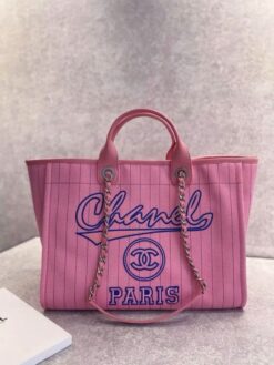 CHANEL PARIS STRIPED PINK REMUIM TOTE BAG