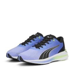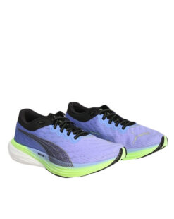 The PUMA Deviate Nitro 2 ‘Royal Sapphire’ is a high-performance running shoe designed for neutral pronators seeking a balance of cushioning and responsiveness. It features a full-length NITRO Elite foam midsole combined with a PWRPLATE carbon composite plate for efficient energy transfer . The breathable mesh upper is reinforced with PWRTAPE for added support, while the PUMAGRIP outsole ensures durable traction on various surfaces . With a weight of approximately 260g and an 8mm heel-to-toe drop, it’s suitable for daily training and long-distance runs . The vibrant Royal Sapphire/Electro Purple colorway adds a stylish touch to its performance-oriented design .